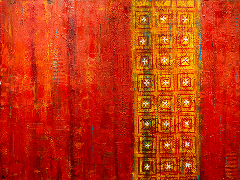 Her collages use layers of color and texture to deeply engage with one’s tactile senses. Her work is ultimately completed by the viewer’s own private meaning and experience.
