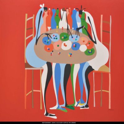 Agorsor is a true artist, his works are mostly contemporary, but he is also a musician in a jazz group .Agorsor is regarded as one of the greatest composers in the twenty first century. He spends a lot of time in the recording studio with his group. He uses bold vibrant colors to reveal the daily lives of people in a modernizing Ghana, often in an upbeat and humorous way.
