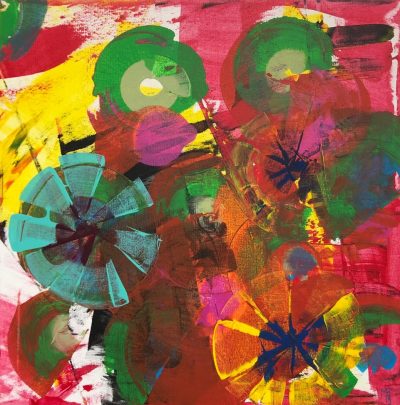 Her work matured but her motto stayed  “Colors & Energy”.  She is truly a soul artist.  With time & life experiences, her art became symbol, pure expression of  joy.  Her confident use of bold color seems to light up the very spaces they inhabit.  As a true seeker & creator, she fabricates her sculptures herself from A to Z, including pouring and grinding.  She loves the work and experiences all her creations as meditative and expanding processes. Some of her sculptures are I AM LOVE, I AM THE FLOW, I AM JOY, YES, MEMORY, WINDY CITY, RIVERWALK, ELEMENTS, MOTHER NATURE…And her paintings, I SEE THE STARS IN YOUR EYES or SOUND OF FREEDOM…She shares her energy & vision with friends, vibrant searchers, art lovers.